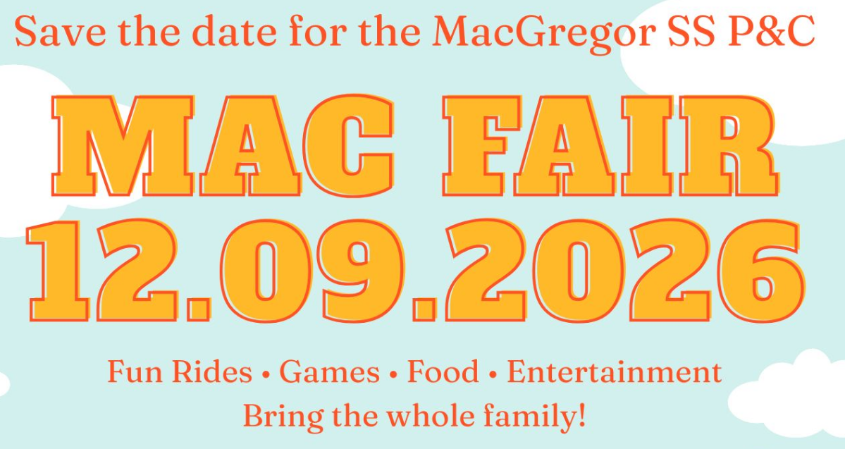 MacGregor P&C will be holding their Mac Fair on 12th September on the MacGregor Oval.